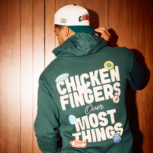 Chicken Fingers Over Most Things Hooded SweatshirtOriginal price $44.99 - Original price $44.99Original price$44.99$44.99 - $44.99Current price $44.99| /Show the world where your priorities lie in the Chicken Fingers Over Most Things hoodie. Forest-green fleece keeps it cozy while the big back graph...