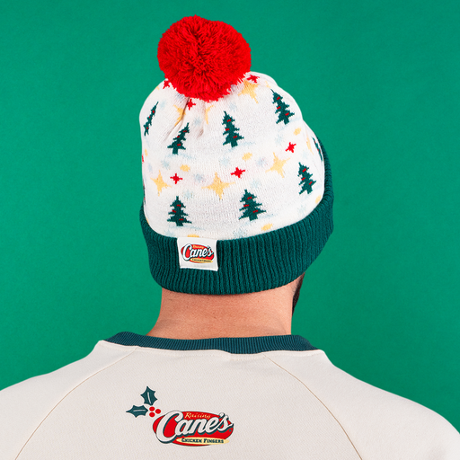 Dreaming of a Raising Cane's Holiday BeanieOriginal price $15.99 - Original price $15.99Original price$15.99$15.99 - $15.99Current price $15.99| /Top off your holiday look with the Dreaming of a Cane’s Holiday Beanie. This cozy knit features a playful pattern of Christmas trees and stars with...